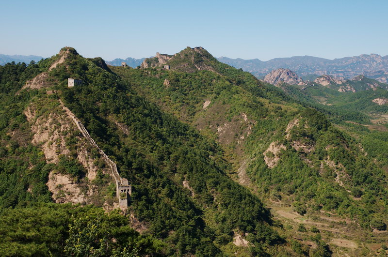 The Great Wall of Xiaohekou. Behind that the wall of Gaoloushan, Xiaomaoshan and Damaoshan.