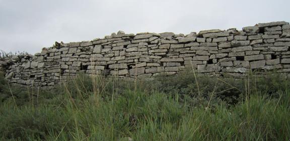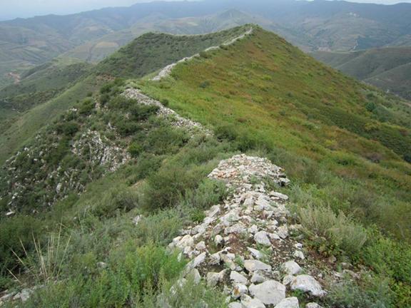 The wall is made primarily of limestone. Its condition varies greatly, from nearly intact in some sections to essentially undetectable in others. The wall follows ridges in mountainous and sparsely populated terrain.