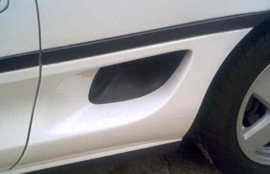In November 2001, I made a body modification to the side air intakes, removing the horizontal line from the side air intake ducts. Scroll further down to see how this modification was done.