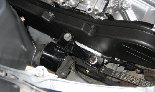 Engine in car, supported by front and rear engine mounts and a jack under the