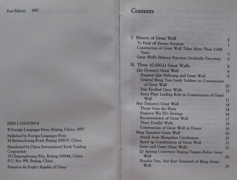 This interesting book contains stories such as Great Wall legends, and information on construction design and techniques.