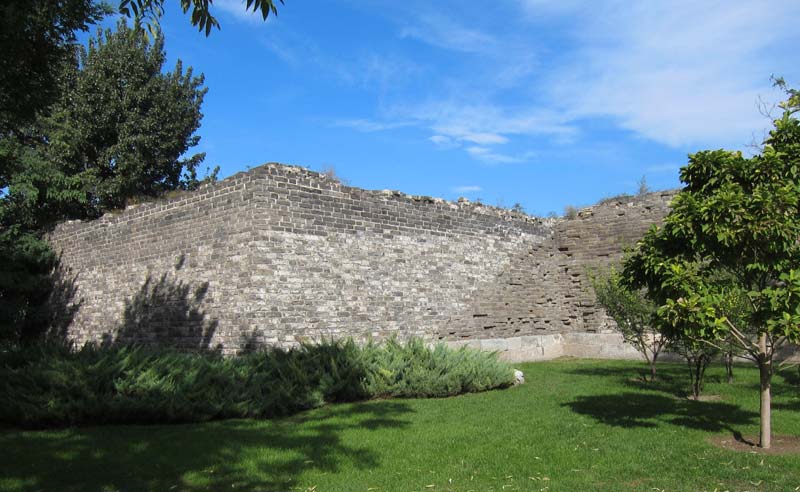 Only the corner tower and about 188 meters at the eastern end has been restored. The unrestored part is relatively easy to access if you don't mind a little bit of climbing.