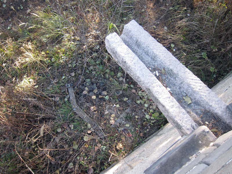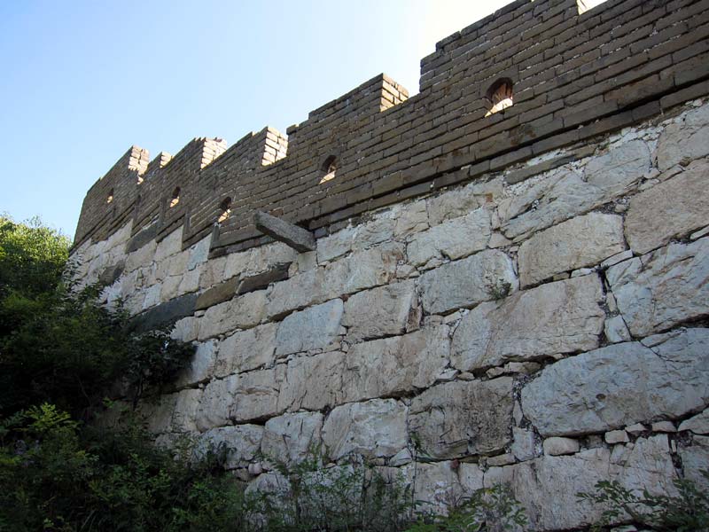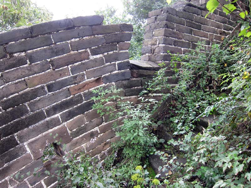 I noticed these prominent horizontal lines at the eastern side of the Lianhuachi Great Wall. I can only assume that the wall was originally built to the height of the line and then later the height of the wall was increased to its present height, leaving the line showing the obvious, earlier position of the top of the wall.