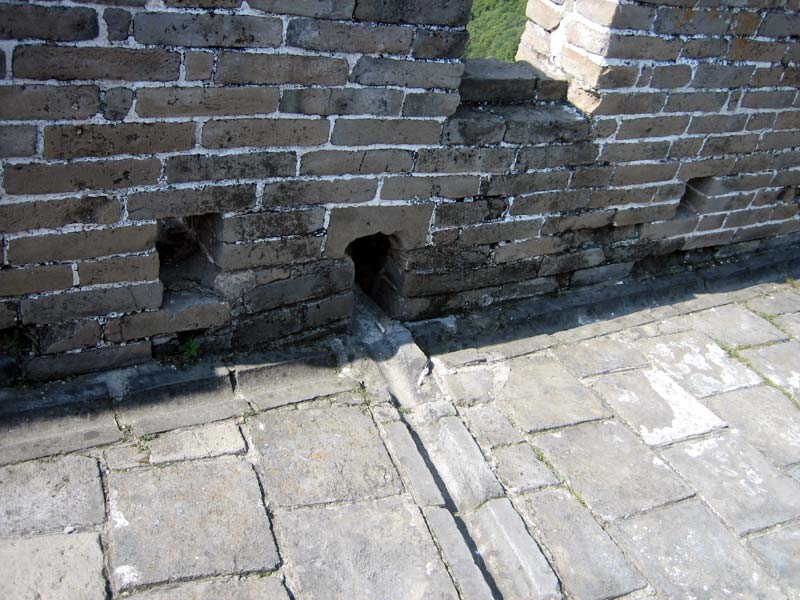 Water channels run water along the Wall on the enemy side where water spouts might aid climbing (Mutianyu)