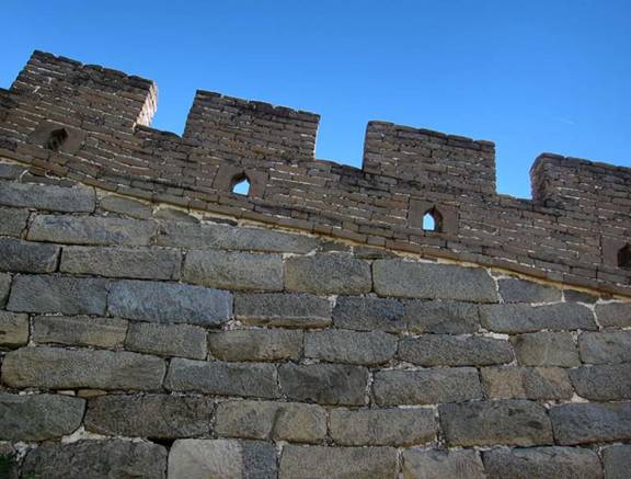 The Great Wall is well known for its crenellations, or battlements. These are the up-and-down patterns made into the upper walls above the walking surfaces as well as the tops of watch towers for the purpose of protecting those defending the wall.