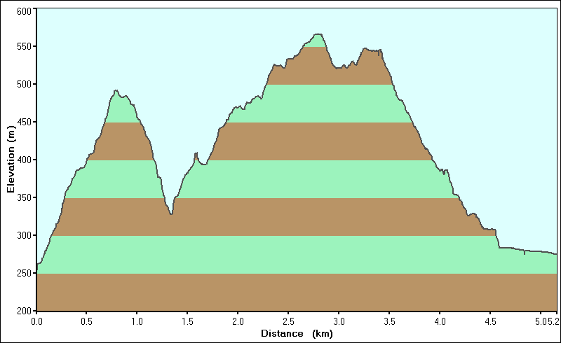 The initial slope heading west from the road cannot be climbed. There are paths around this area on both the north and the south side.