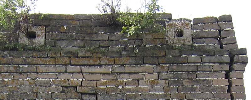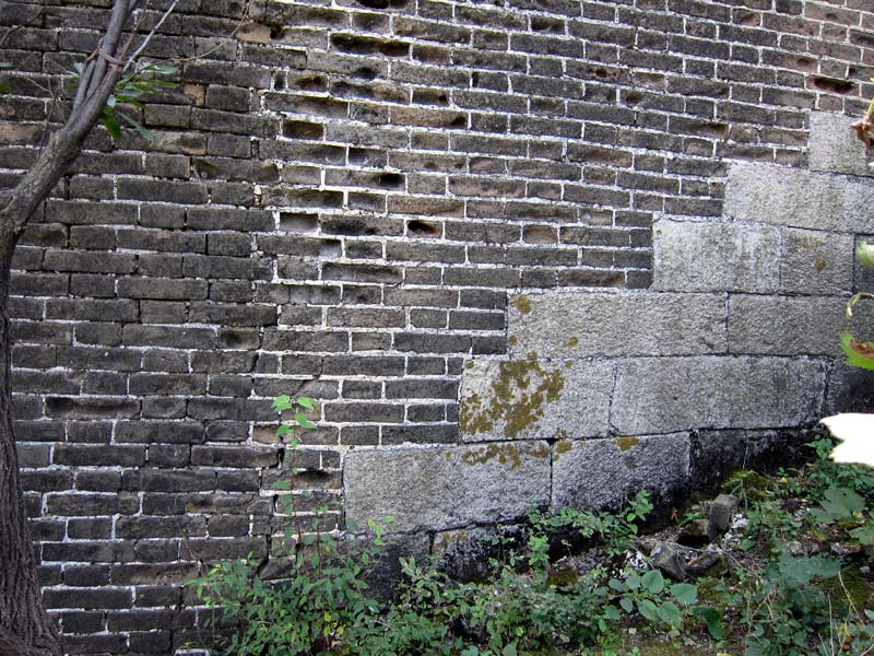 Lianhuachi is starkly different on its east and west side. The east side, which is made of stone, is highly deteriorated as is typical for stone walls of this type in the mountains. This makes climbing challenging. On the west side, the construction is of brick with a cut rectangular stone base. Climbing is much easier on this side, but there are still areas where the surface is steep and crumbling.