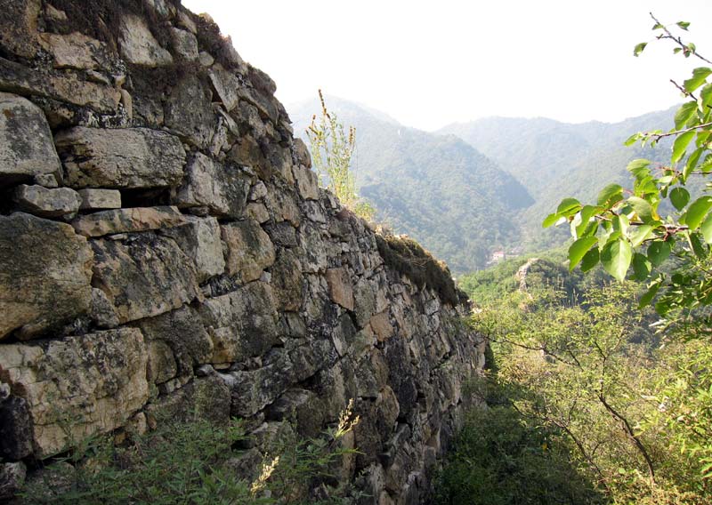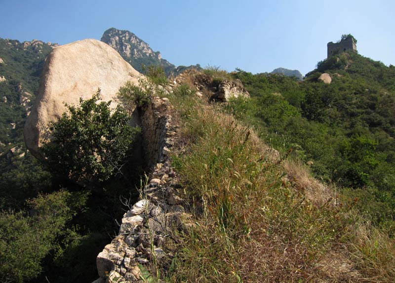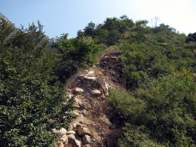 Hiking to the east from Lianhuachi, towards Shentangyu, there are several difficult spots. Some of them can be bypassed with short trails, and others must be negotiated directly. There is also a span with no wall at all where you must follow a trail through the woods.