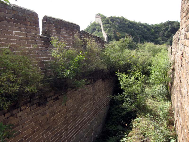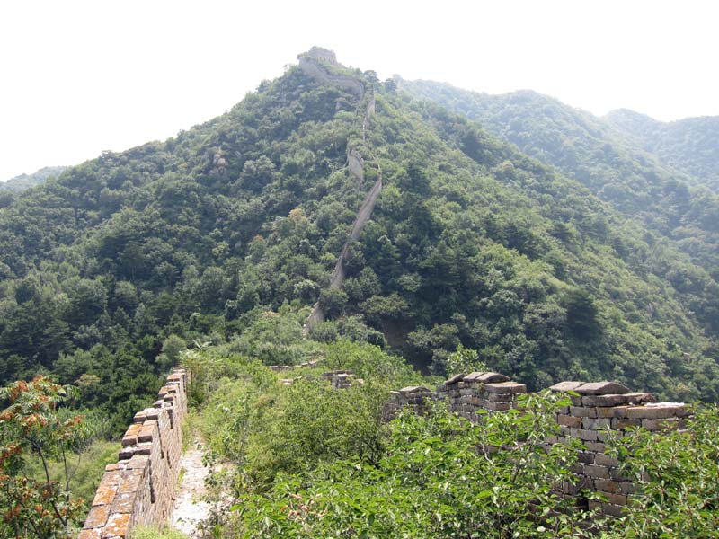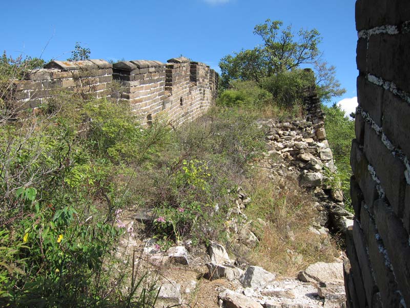 There is a span of the Great Wall that follows a high mountain ridge to the south from the eastern end and southernmost point of the Mutianyu Great Wall before ending abruptly at the top of a steep peak. This wall is about 0.87 kilometers (0.54 miles) in length. Most of it is in excellent original condition as it was left by the Ming Dynasty. There are a few spots that are badly damaged towards the northern end.