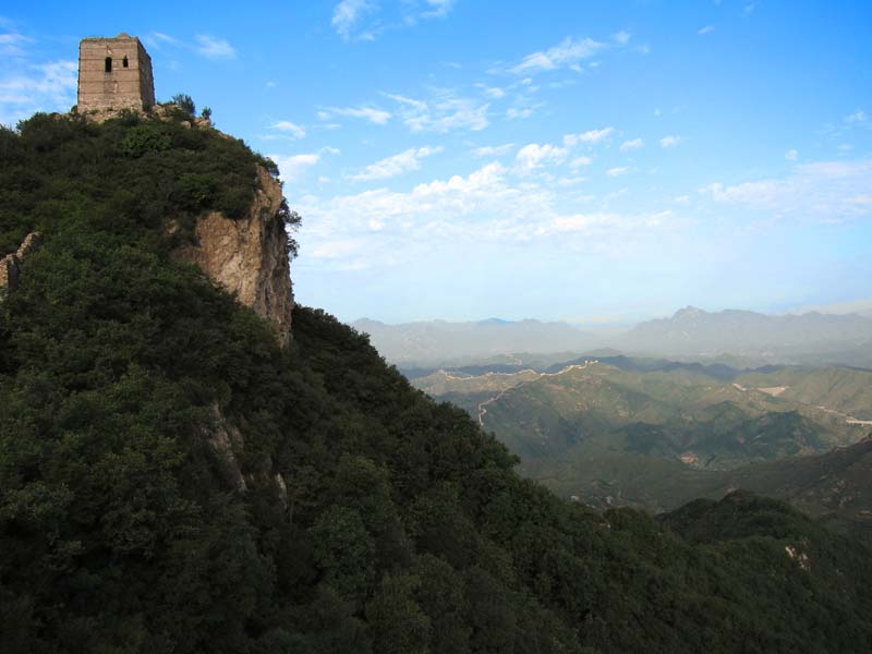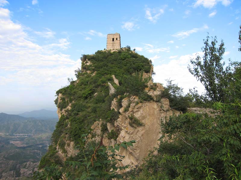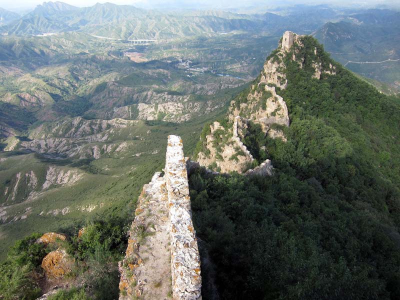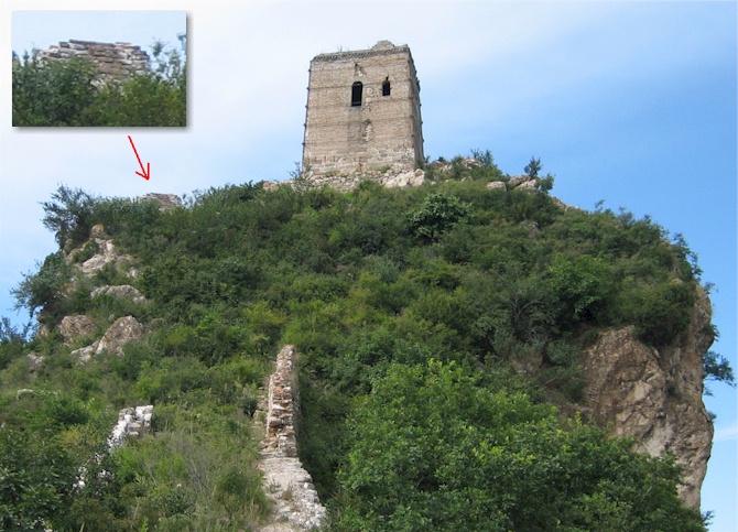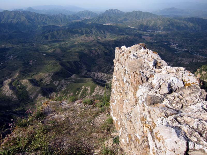 At the east end of Tianqiao is tower 16, the highest tower at Simatai, called Wangjinglou, Wangjing Tower, the Capital-in-sight tower, or the Tower for Viewing the Capital. Its elevation is 986 meters (3235 feet). It's said that from here one can see the lights of Beijing on a clean night, and maybe that was once true for the view from here is very impressive indeed.