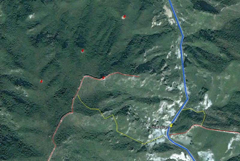 Shixiaguan Great Wall map – The red line in this map represents the Great Wall
