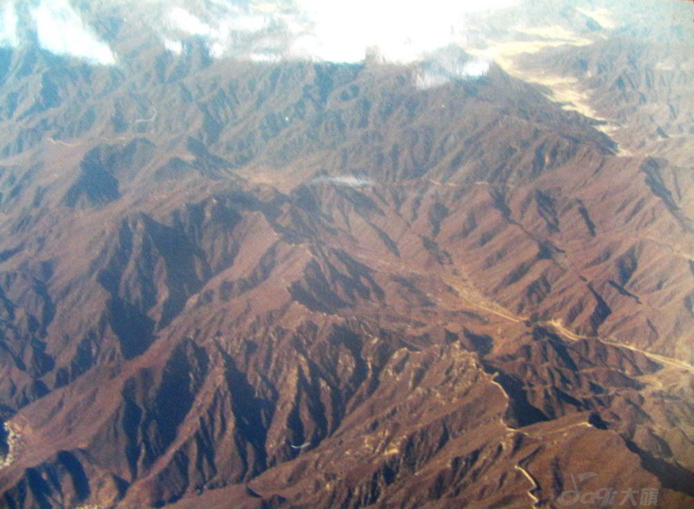 From the Badaling museum, an aerial photo of the Ox Horn Wall area between Mutianyu and Jiankou