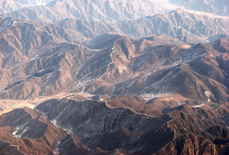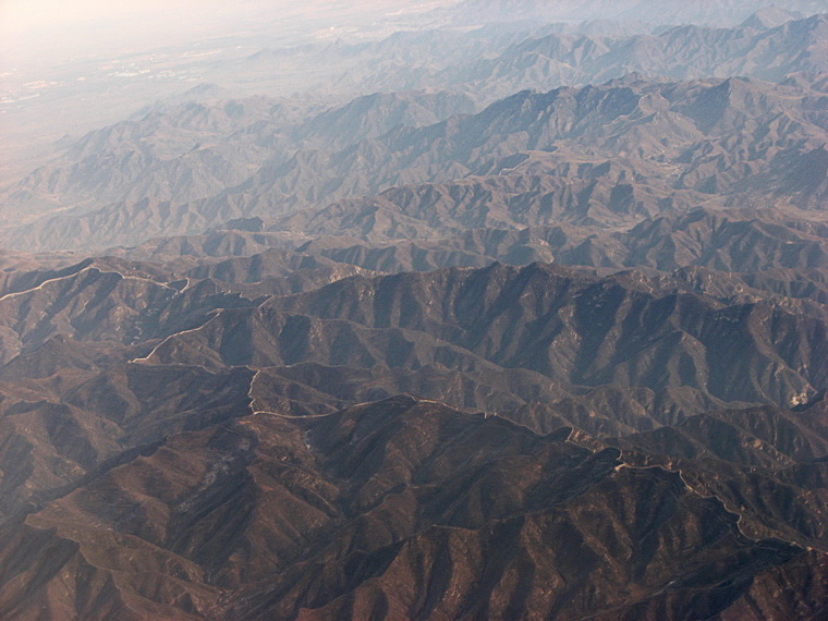 Before good satellite images of China were available, I used to spend a lot of time looking for aerial photos of the Great Wall. They were not easy to find. Here are a few of the ones that I did find. I tried to take a few of my own with little success. Commercial airlines don't fly very low over the Great Wall.