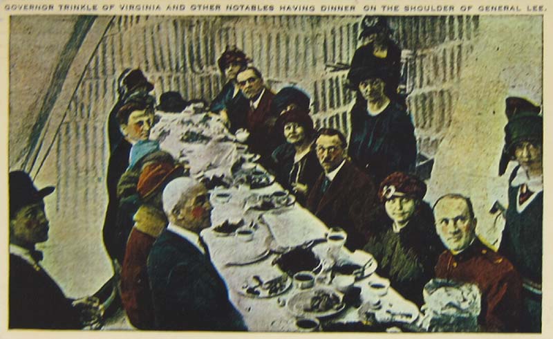 Borglum's luncheon on Lee's shoulder. Gutzon Borglum is at the left and his son, Lincoln, is at the upper right.