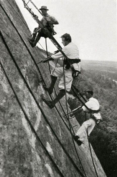 Members of Borglum's crew. Note the angle of the mountain.