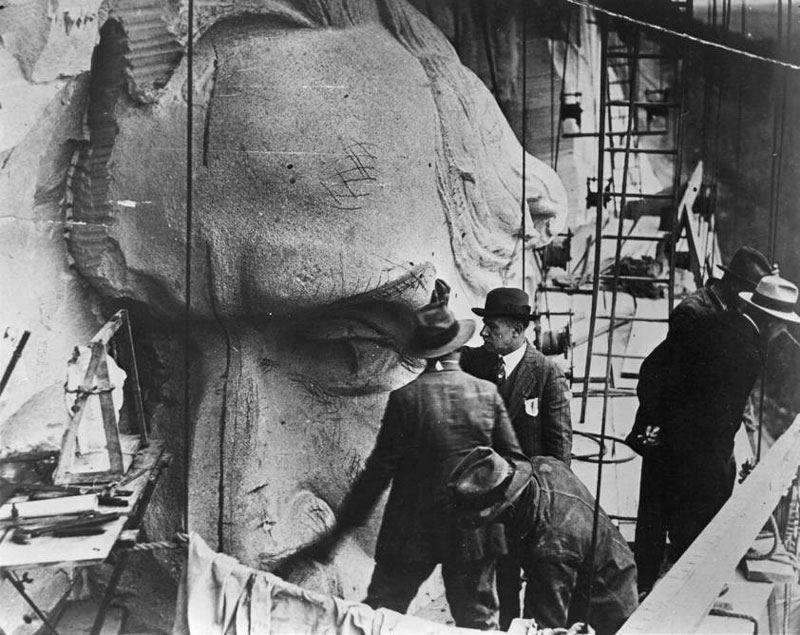 This 1924 photo shows how Borglum left the carving.