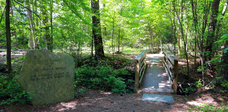 The Nature Garden was established by the Atlanta Branch of the National League of American Pen Women. The Nature Garden is located along the Cherokee Trail just east of the Memorial Lawn. It can also be reached via a short trail from the parking area for the Studdard Picnic area.