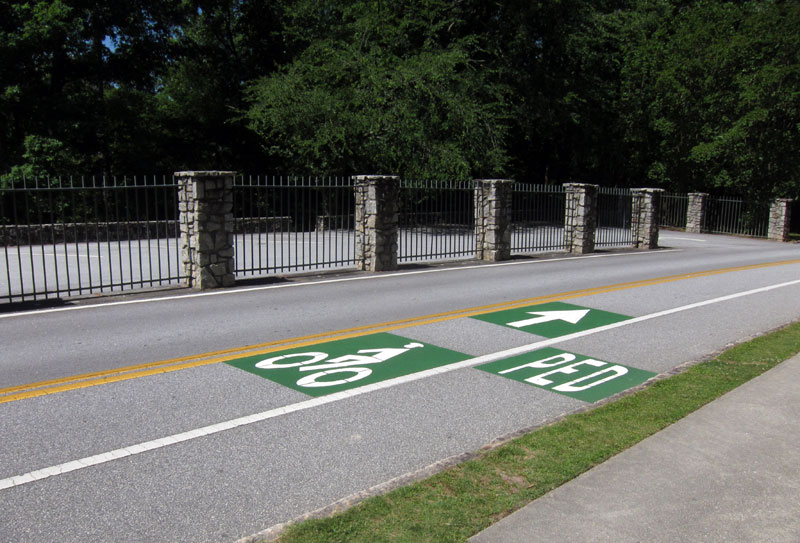 Road and trail running are both popular activities at Stone Mountain. Most road runners utilize Robert E. Lee Boulevard, the perimeter road around the mountain, which is 4.84 miles (7.78 kilometers) long and quite hilly. 2.72 miles (4.37 kilometers) of the road on the south side of the mountain is one-way (counter-clockwise for vehicles) and the remaining 2.12 miles (3.41 kilometers) is two-way. The one-way section has dedicated running and cycling lanes. Runners traditionally travel clockwise around the entire circuit, but some like to buck tradition and go the other direction.
