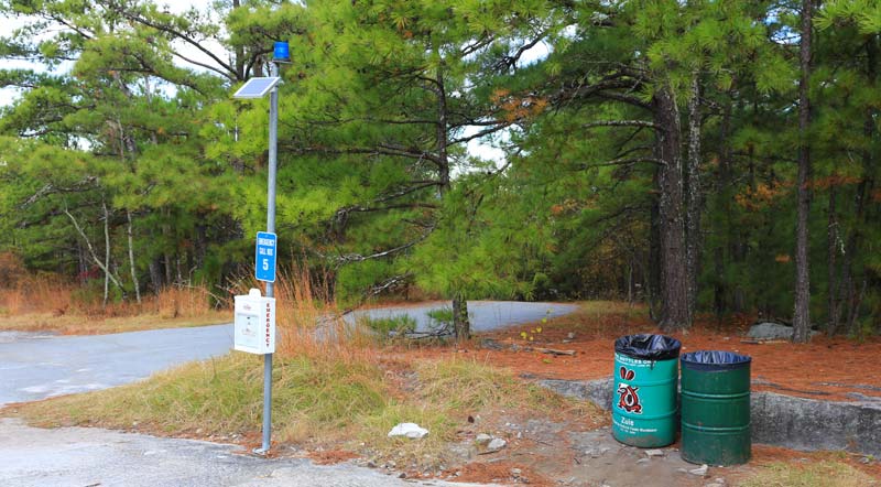 Just past the Cherokee Trail crossing, there are two phone poles where the unfortunately-located phone and power lines to the summit cross the Walk-Up Trail. Over the years, people have made a point of sticking chewing gum to these poles, and they are now completely covered. Don't ask why.