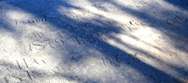 Just a few paces further up on the left side of the trail is an engraving dated 1876.